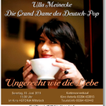 Ulla Meinecke ist die Wegbereiterin und Grand Dame des Deutsch-Pop, eine Musiklegende, die immer noch voller Energie agiert und mit ihren musikalischen Lesungen beeindruckt. Niemand kann sich der Bühnenpräsenz von Ulla Meinecke und dem wunderbaren Spiel des Gitarristen Ingo York entziehen. Zumindest niemand, der diese verträumten, nachdenklich machenden, beseelten und kraftvollen Lieder liebt, die darin besungenen Lebensweisheiten nachvollziehen kann und sich von den Melodien magisch angezogen ...