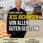 Am 18. Oktober 2026 um 15:00 Uhr begegnet Jess Jochimsen mit .seinem Programm „Von allen guten Geister“ der um sich greifenden Hirn- und Herzvereisung mit seiner ganz eigenen Mischung aus kluger politischer Satire, zum Sterben schönen Songs und schr...