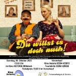 Auch 2024 gibt es wieder „Kunst im Kino“ im Wittstocker Kino „Astoria“ Jan-Peter Petersen (Gründer, Autor und Schauspieler des Hamburger Kabaretts Alma Hoppe) präsentiert sein neues Solo-Programm: „zu spät ist nie zu früh“